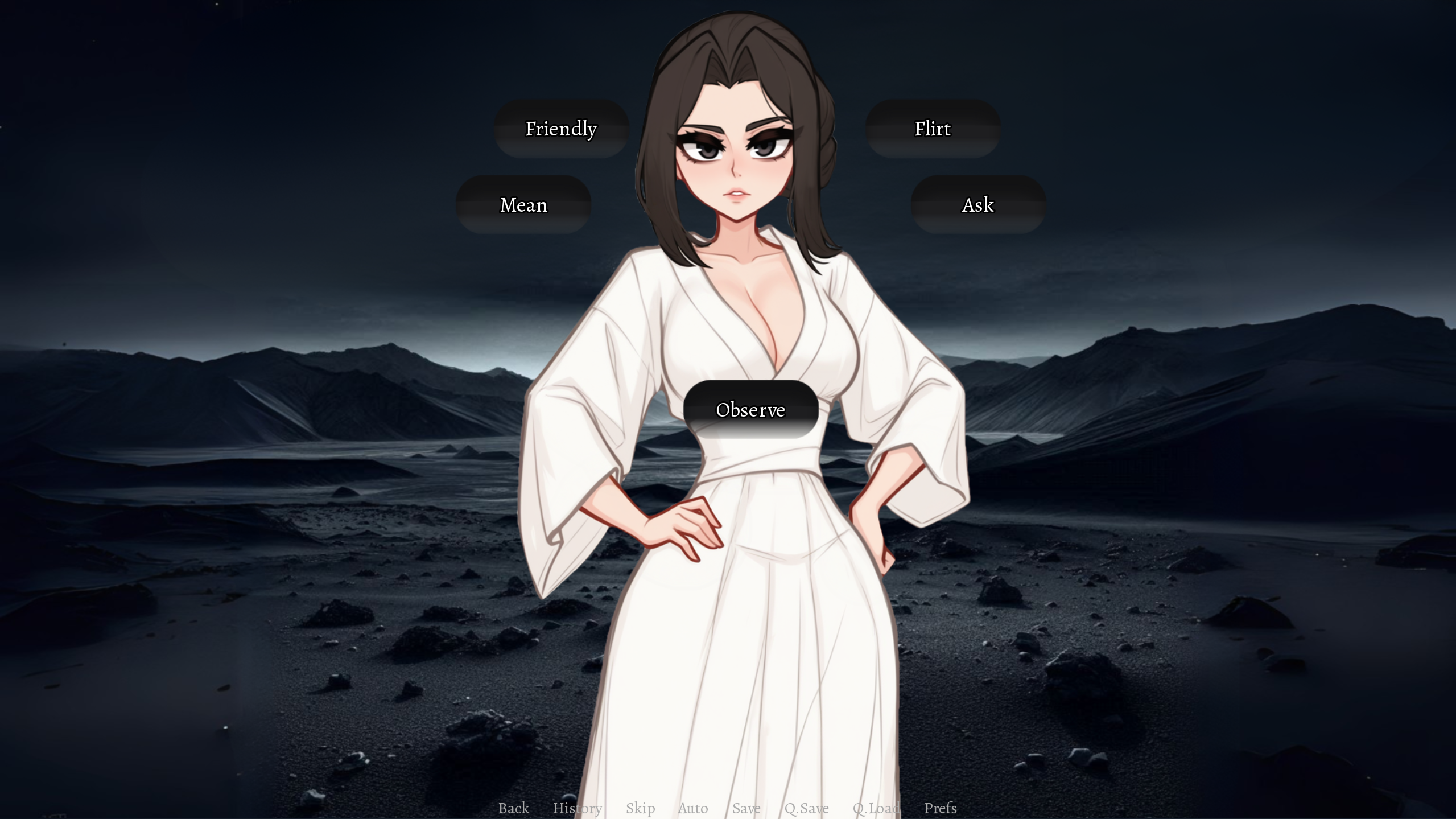 Just started the game and i flirted with thr guy and he says he has an urge to you know and 3 options appear the top one is blank and the one underneath it says back away. When i hit the top option i get an error message if i hit ignore the dialogue seems to imply we had sex?